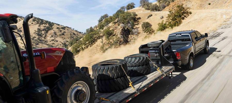 The 2026 Ram 2500 & 3500 HD deliver intense performance heights up to 430 horsepower, best in class diesel torque up to 1,075 pound-feet, and heavy duty hauling up to 36,610 lbs. As the ideal choice for drivers with large trailers, farm equipment, and more to move, the 2026 Ram 2500 & 3500 double down with class-exclusive Link Coil & Auto-Level Rear Suspension with an available Bed Lowering Mode to simplify trailer hitching. As well, dedicated trailer technologies help you keep an eye on your trailer’s tire health and maneuverability when reversing. Keep reading this powertrain guide from our experts at Tarrabain Motor Products in Lac La Biche, AB to learn all about the 2026 Ram 2500 & 3500’s powertrain specs and towing potential: